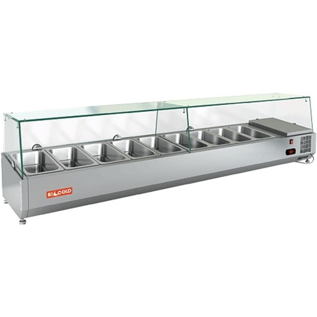 Каталог оборудования Холодильное оборудованиеВитрины для ингредиентовВитрина холодильная для ингредиентов HICOLD VRTG 1970 к PZ3 (1/4) Витрина холодильная для ингредиентов HICOLD VRTG 1970 к PZ3 (1/4) Код товара: 064-660 Поделиться: WhatsAppTelegram СравнитьДобавить в КПВ избранное 0 69 274 ₽ В корзину 0 шт Под заказСамовывоз сегодня бесплатно Взять в кредит Купить в лизинг Получить консультацию в WhatsApp Описание Характеристики Отзывы 0 Инструкции 3 Витрина холодильная для ингредиентов HICOLD VRTG 1970 к PZ3 (1/4) предназначена для охлаждения, кратковременного хранения и демонстрации ингредиентов, салатов и готовых блюд на предприятиях общественного питания и торговли. Устанавливается на холодильные столы для пиццы серии PZE3 благодаря встроенным креплениям в нижней части корпуса. На фото показана аналогичная модель с настольной установкой. Ключевые особенности: Корпус из нержавеющей стали — долговечность, простота ухода. Электронная панель управления — точная регулировка температуры. Исполнение G — стеклянная надстройка для удобного обзора продуктов. Высота витрины — 459 мм — компактное размещение на рабочей поверхности. Вместимость: 9 x GN1/4 — рациональная организация хранения (гастроёмкости приобретаются отдельно). Совместимые модели столов: PZE3-1111/SN, PZE3-1111/GN HICOLD VRTG 1970 к PZ3 (1/4) — это профессиональная настольная витрина, которая сочетает компактные размеры, современное управление и высокое качество охлаждения. Отличный выбор для пиццерий, ресторанов и кафе, где важны удобство доступа, скорость работы и эффектная подача продуктов.Изображение товара, представленного на фото, может отличаться от его фактического вида. Показать все Габаритные размеры1970×325×459 ммДиапазон рабочей температурыот +2 до +7 °CДлина1970 ммГлубина325 ммВысота459 ммТип крышкиСтеклянная Гастроемкостей9 штТип гастроемкостейGN1/4 Мощность150 ВтНапряжение220 ВТип охлажденияСтатическое Материал изготовленияНержавеющая сталь ХладагентR134 Мощность0,15 кВтВес нетто25 кгВес брутто71 кгТип оттайкиРучная Габариты в упаковке2100×540×580 ммБрендHicold Оставить отзыв Еще никто не оставил отзыв на этот товар Инструкция на HICOLD VRTG 1970 к PZ3.pdfСхема установки на стол.jpgДекларация о соответствии.pdf Похожие товары Перейти в каталог Под заказ Цена по запросу Витрина для ингредиентов Polair VT2-G (1/3) открытого типа В наличии 72 104 ₽ Витрина холодильная для ингредиентов TEFCOLD VK33-120 С этим товаром покупают В наличии 79 865 ₽ Стол морозильный Cooleq SS45BT В наличии 12 637 ₽ Льдогенератор HURAKAN HKN-IMF12M В наличии 63 865 ₽ Шкаф холодильный МХМ Капри 0,5М