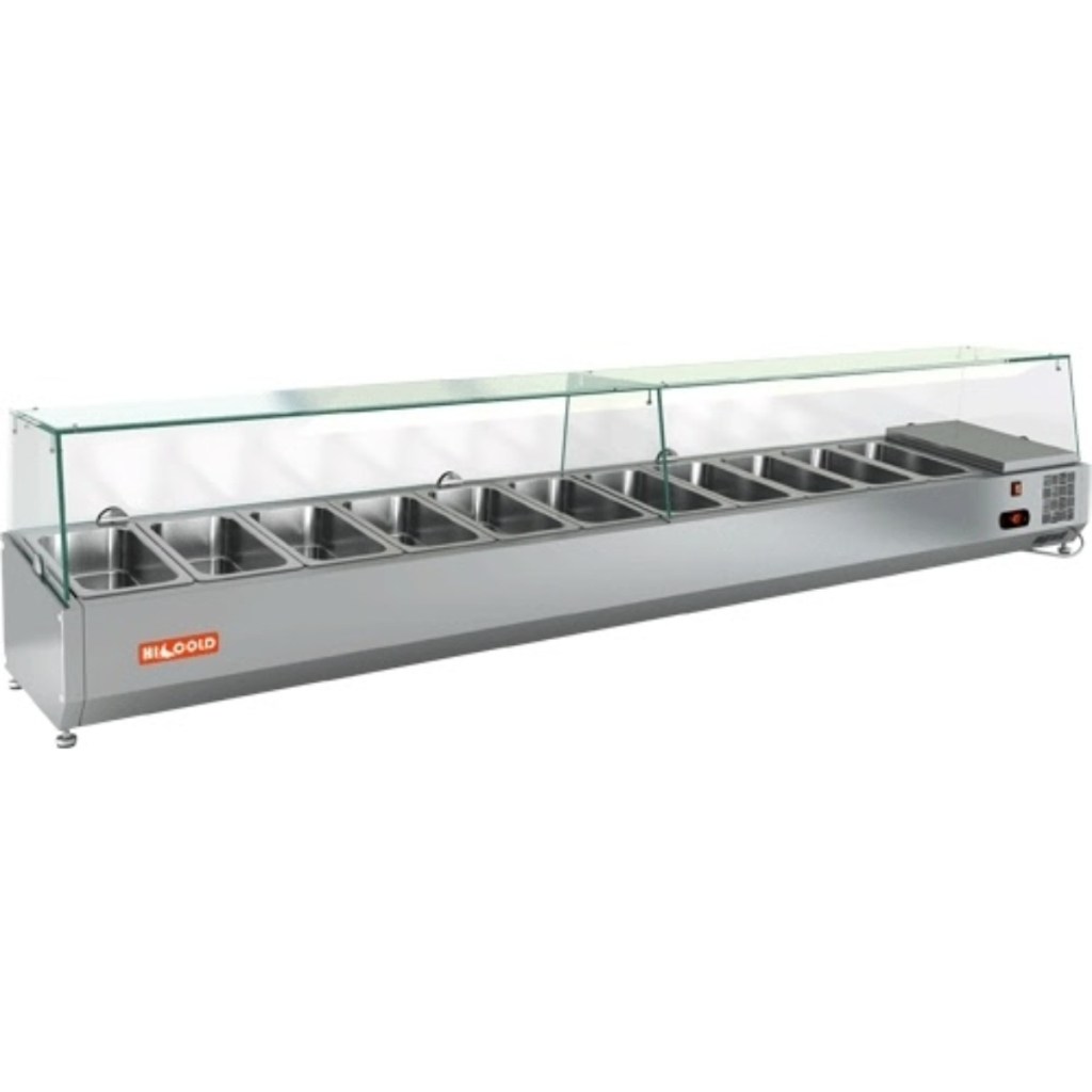 Каталог оборудования Холодильное оборудованиеВитрины для ингредиентовВитрина холодильная для ингредиентов HICOLD VRTG 2280 1/3 Витрина холодильная для ингредиентов HICOLD VRTG 2280 1/3 Код товара: 001-528 Поделиться: WhatsAppTelegram СравнитьДобавить в КПВ избранное 0 84 879 ₽ В корзину 0 шт Под заказСамовывоз сегодня бесплатно Взять в кредит Купить в лизинг Получить консультацию в WhatsApp Описание Характеристики Отзывы 0 Инструкции 2 Витрина холодильная для ингредиентов HICOLD VRTG 2280 1/3 предназначена для охлаждения, кратковременного хранения и наглядной демонстрации ингредиентов, салатов и готовых блюд на предприятиях общественного питания и в торговых точках. Гастроёмкости в комплект не входят, приобретаются отдельно. Основные особенности: Корпус выполнен из нержавеющей стали, обеспечивая долговечность и легкость в уходе; Электронная панель управления для точной настройки температуры; Модель с надстройкой из стекла (исполнение G) для удобной демонстрации продуктов; Высота витрины — 225 мм, высота стеклянной надстройки — 205 мм; Вместимость: 11 гастроёмкости GN1/3; Опорные ножки для устойчивой установки на столешнице. HICOLD VRTG 2280 1/3 — компактная и функциональная настольная витрина, идеально подходящая для демонстрации и кратковременного хранения продуктов на профессиональной кухне или в торговой зоне.Изображение товара, представленного на фото, может отличаться от его фактического вида. Показать все Габаритные размеры2280×385×459 ммДиапазон рабочей температурыот +2 до +7 °CДлина2280 ммГлубина385 ммВысота459 ммТип крышкиСтеклянная Гастроемкостей11 штТип гастроемкостейGN1/3 Мощность150 ВтРасход электроэнергии в сутки0,15 кВтНапряжение220 ВТип охлажденияСтатическое Материал изготовленияНержавеющая сталь ХладагентR134 Мощность0,15 кВтВес нетто65 кгВес брутто109 кгТип оттайкиРучная Габариты в упаковке2380×485×559 ммБрендHicold Оставить отзыв Еще никто не оставил отзыв на этот товар Инструкция на HICOLD VRTG 2280.pdfДекларация о соответствии.pdf Похожие товары Перейти в каталог Под заказ 50 860 ₽ Витрина холодильная для ингредиентов HICOLD VRTU 1390 1/4 Под заказ 60 850 ₽ Витрина холодильная для ингредиентов HICOLD VRTO 2280 к PZ3 (1/3) В наличии 41 663 ₽ Витрина холодильная для ингредиентов ФИНИСТ "ToppingBox" НХВк-5 В наличии 66 195 ₽ Витрина холодильная для ингредиентов HICOLD VRTG 1485 1/3 В наличии 47 943 ₽ Витрина холодильная для ингредиентов HICOLD VRTU 1000 1/3 Под заказ 89 847 ₽ Витрина холодильная для ингредиентов HICOLD VRTG 2360 1/3 Под заказ 52 020 ₽ Витрина для ингредиентов Polair VT2EN (1/3) открытого типа Под заказ 39 585 ₽ Витрина холодильная для ингредиентов HURAKAN HKN-VRX1400/330 С этим товаром покупают Под заказ 108 891 ₽ Стол морозильный HiCold SN 1/BT Под заказ 51 624 ₽ Льдогенератор HURAKAN HKN-IMF20 (пальчики) В наличии 71 392 ₽ Шкаф холодильный Polair СМ 105-S Ранее просмотрено Под заказ 71 626 ₽ Витрина холодильная Ангара 1 - 1,3