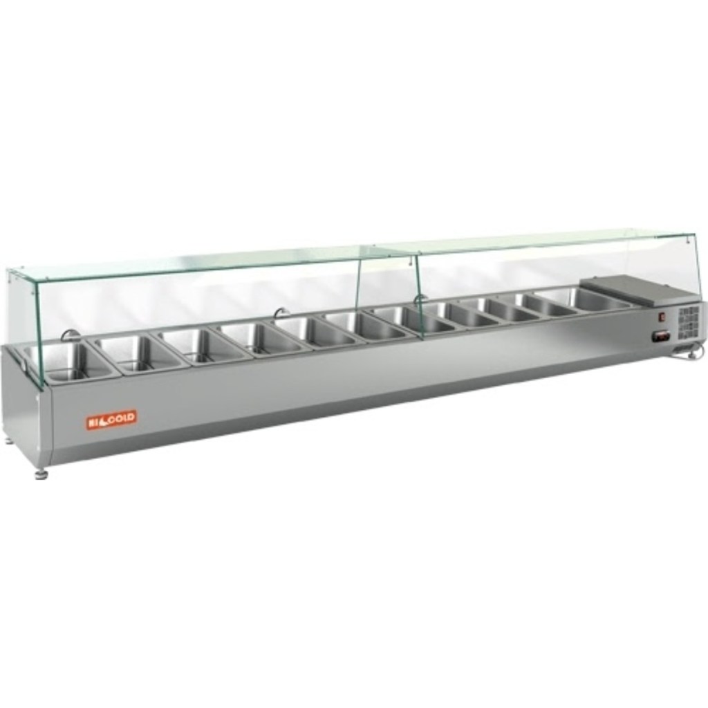 Каталог оборудования Холодильное оборудованиеВитрины для ингредиентовВитрина холодильная для ингредиентов HICOLD VRTG 2360 1/3 Витрина холодильная для ингредиентов HICOLD VRTG 2360 1/3 Код товара: 064-449 Поделиться: WhatsAppTelegram СравнитьДобавить в КПВ избранное 0 89 847 ₽ В корзину 0 шт Под заказСамовывоз сегодня бесплатно Взять в кредит Купить в лизинг Получить консультацию в WhatsApp Описание Характеристики Отзывы 0 Инструкции 2 Витрина холодильная для ингредиентов HICOLD VRTG 2360 1/3 предназначена для охлаждения, кратковременного хранения и наглядной демонстрации ингредиентов, салатов и готовых блюд на предприятиях общественного питания и в торговых точках. Гастроёмкости в комплект не входят, приобретаются отдельно. Основные особенности: Корпус выполнен из нержавеющей стали, обеспечивая долговечность и легкость в уходе; Электронная панель управления для точной настройки температуры; Модель с надстройкой из стекла (исполнение G) для удобной демонстрации продуктов; Высота витрины — 225 мм, высота стеклянной надстройки — 205 мм; Вместимость: 10 гастроёмкостей GN1/3 + 1 гастроёмкость GN1/2; Опорные ножки для устойчивой установки на столешнице. HICOLD VRTG 2360 1/3 — компактная и функциональная настольная витрина, идеально подходящая для демонстрации и кратковременного хранения продуктов на профессиональной кухне или в торговой зоне.Изображение товара, представленного на фото, может отличаться от его фактического вида. Показать все Габаритные размеры2360×385×459 ммДиапазон рабочей температурыот +2 до +7 °CДлина2360 ммГлубина385 ммВысота459 ммТип крышкиСтеклянная Гастроемкостей11 штТип гастроемкостейGN1/3, GN1/2 Мощность0,15 ВтНапряжение220 ВТип охлажденияСтатическое Материал изготовленияНержавеющая сталь ХладагентR134 Вес нетто67 кгВес брутто107 кгТип оттайкиРучная Габариты в упаковке2460×485×559 ммБрендHicold Оставить отзыв Еще никто не оставил отзыв на этот товар Инструкция на HICOLD VRTG 2360.pdfДекларация о соответствии.pdf Похожие товары Перейти в каталог Под заказ 84 610 ₽ Витрина холодильная для ингредиентов HICOLD VRTG 2280 к PZ3 (1/3) Под заказ 53 040 ₽ Витрина холодильная для ингредиентов TEFCOLD VK33-180 В наличии 71 218 ₽ Витрина холодильная для ингредиентов HICOLD VRTG 1835 к PZ3 (1/3) В наличии 70 407 ₽ Витрина холодильная для ингредиентов HICOLD VRX 1800 1/3 В наличии 46 639 ₽ Витрина холодильная для ингредиентов TEFCOLD VK33-120 Под заказ 63 496 ₽ Витрина холодильная для ингредиентов HICOLD VRTG 1525 1/4 Под заказ 55 558 ₽ Витрина холодильная для ингредиентов HICOLD VRTO 1915 к PZ4 (1/3) Под заказ 56 610 ₽ Витрина для ингредиентов Polair VT3EN (1/3) открытого типа С этим товаром покупают Под заказ 156 824 ₽ Шкаф холодильный Apach Cook Line F700TN DOM PLUS В наличии 126 000 ₽ Шкаф холодильный универсальный Carboma V700 Под заказ 136 935 ₽ Шкаф морозильный Polair CB107hd-S Под заказ 89 394 ₽ Шкаф холодильный Abat ШХс-0,5 В наличии 140 109 ₽ Шкаф морозильный Tatra TRC500 BT В наличии 122 323 ₽ Шкаф холодильный универсальный МХМ ШХСн 0,80 М Под заказ 183 209 ₽ Шкаф морозильный МХМ Капри 1,5 НВ нержавейка В наличии 196 953 ₽ Шкаф холодильный настенный ФИНИСТ CU-12