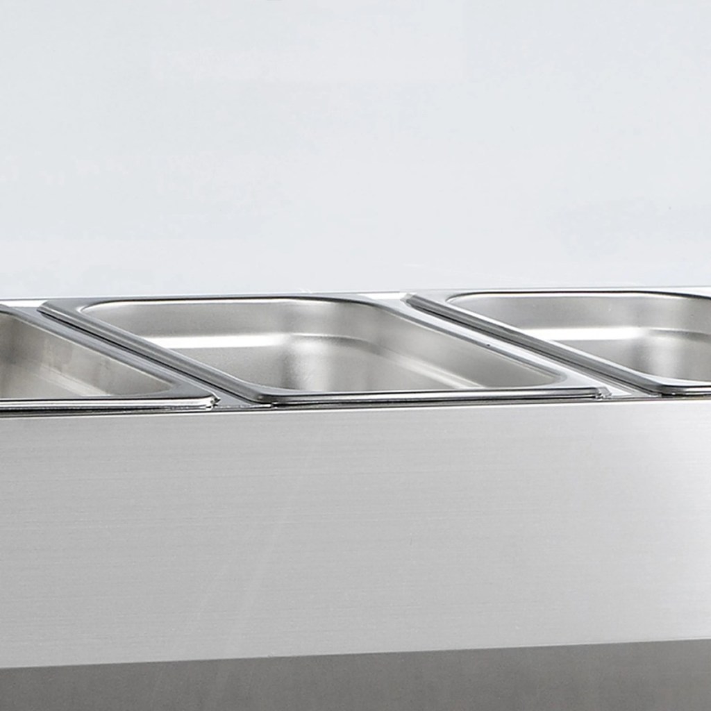 Каталог оборудования Холодильное оборудованиеВитрины для ингредиентовВитрина холодильная для ингредиентов TEFCOLD VK38-180 Витрина холодильная для ингредиентов TEFCOLD VK38-180 Код товара: 067-497 Поделиться: WhatsAppTelegram СравнитьДобавить в КПВ избранное 0 100 021 ₽ В корзину 0 шт В наличииСамовывоз сегодня бесплатно Взять в кредит Купить в лизинг Получить консультацию в WhatsApp Описание Характеристики Отзывы 0 Инструкции 2 Витрина холодильная для ингредиентов TEFCOLD VK38-180 предназначена для кратковременного хранения и демонстрации салатов, мясных и рыбных закусок, а также ингредиентов на предприятиях общественного питания и торговли. Корпус и внутренняя обшивка выполнены из нержавеющей стали, обеспечивая долговечность и легкость очистки. Гастроемкости в комплект не входят. Особенности: Статическое охлаждение — равномерное поддержание температуры для деликатных продуктов. Механическое размораживание — надежное удаление наледи без вмешательства пользователя. Хладагент R600a — экологичный и энергоэффективный. Электронный термостат и градусник — точная настройка и контроль температуры. Гнутый стеклянный колпак — обеспечивает обзор продукции и защиту от внешних воздействий. Регулируемые ножки — удобная установка и устойчивость на неровной поверхности. Климатический класс 4 — работа при температуре окружающей среды до +32°C. Вместимость — 6×GN 1/3 глубиной 150 мм, удобно для салатов и закусок. Перегородки — 5 длинных и 4 коротких для удобного разделения продуктов. Уровень шума — 47 дБ, почти бесшумная работа. Хладагент — 0,04 кг, эффективное охлаждение при минимальном расходе. Внутренние размеры — 1445×305×155 мм, компактное размещение емкостей. TEFCOLD VK38-180 — надежная и компактная витрина для демонстрации и кратковременного хранения продуктов с безопасным поддержанием температуры.Изображение товара, представленного на фото, может отличаться от его фактического вида. Показать все Габаритные размеры1500×395×435 ммДиапазон рабочей температурыот +2 до +10 °CДлина1500 ммГлубина395 ммВысота435 ммТип крышкиСтеклянная Гастроемкостей8 штТип гастроемкостейGN 1/3 Мощность0,112 ВтТип охлажденияСтатическое Уровень шума47 дБКлиматический класс4 ХладагентR600a Вес нетто69 кгВес брутто74 кгТип оттайкиРучная Габариты в упаковке1880×440×310 ммБрендTefcold Оставить отзыв Еще никто не оставил отзыв на этот товар Инструкция на TEFCOLD VK38-180.pdfСхема TEFCOLD VK38-180.jpg Похожие товары Перейти в каталог В наличии 66 196 ₽ Витрина холодильная для ингредиентов HICOLD VRTG 1485 1/3 Под заказ 64 792 ₽ Витрина холодильная для ингредиентов HICOLD VRX 1500 1/3 С этим товаром покупают Под заказ 126 495 ₽ Стол холодильный среднетемпературный Carboma T70 M3-1-G 9006 (3GNG/NT Полюс) В наличии 41 718 ₽ Льдогенератор HURAKAN HKN-IMC25 (кубики) В наличии 66 070 ₽ Шкаф холодильный МХМ Капри П-390М Ранее просмотрено В наличии 129 526 ₽ Ларь морозильный TEFCOLD FR505S SL крышка нерж.