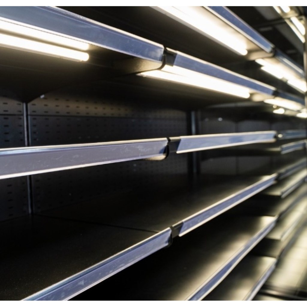 5 рядов полок с удобными ценникодержателями.