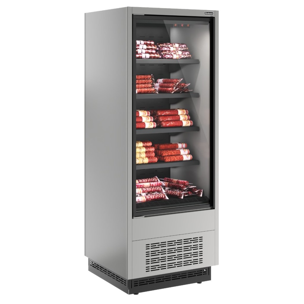Горка холодильная Carboma FC20-07 VV 0,6-1 0300 STANDARD фронт X1 (версия 2.0) (9006-9005) (бок металл) применяется в предприятиях общественного питания и торговли для эффективного охлаждения, кратковременного хранения и предпродажной демонстрации напитков, мясных и птицеводческих продуктов, полуфабрикатов, молочной и гастрономической продукции.