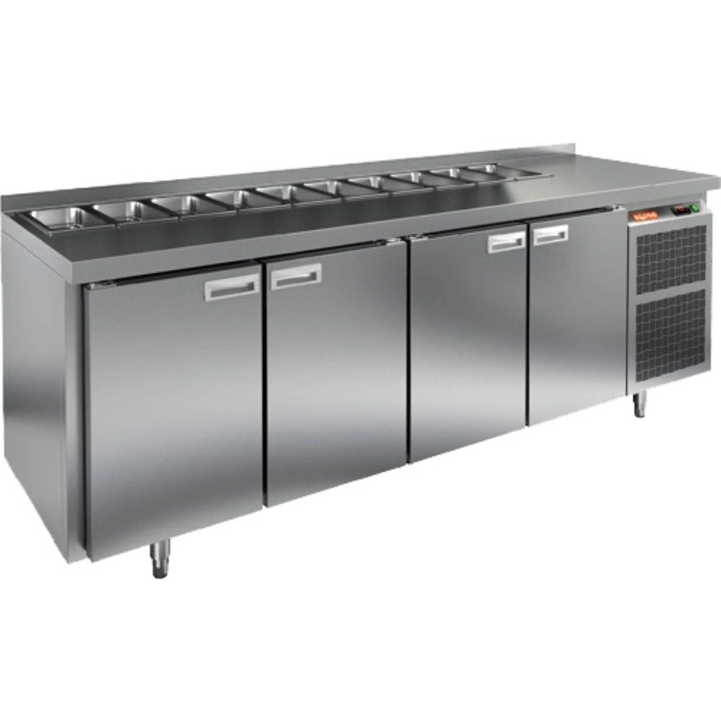 Стол холодильный для салатов HiCold SL1-1111SN без крышки предназначен для предприятий общественного питания и торговли. Он обеспечивает хранение и подготовку ингредиентов для пиццы, салатов и других блюд, а также охлаждение и кратковременное хранение скоропортящихся продуктов.