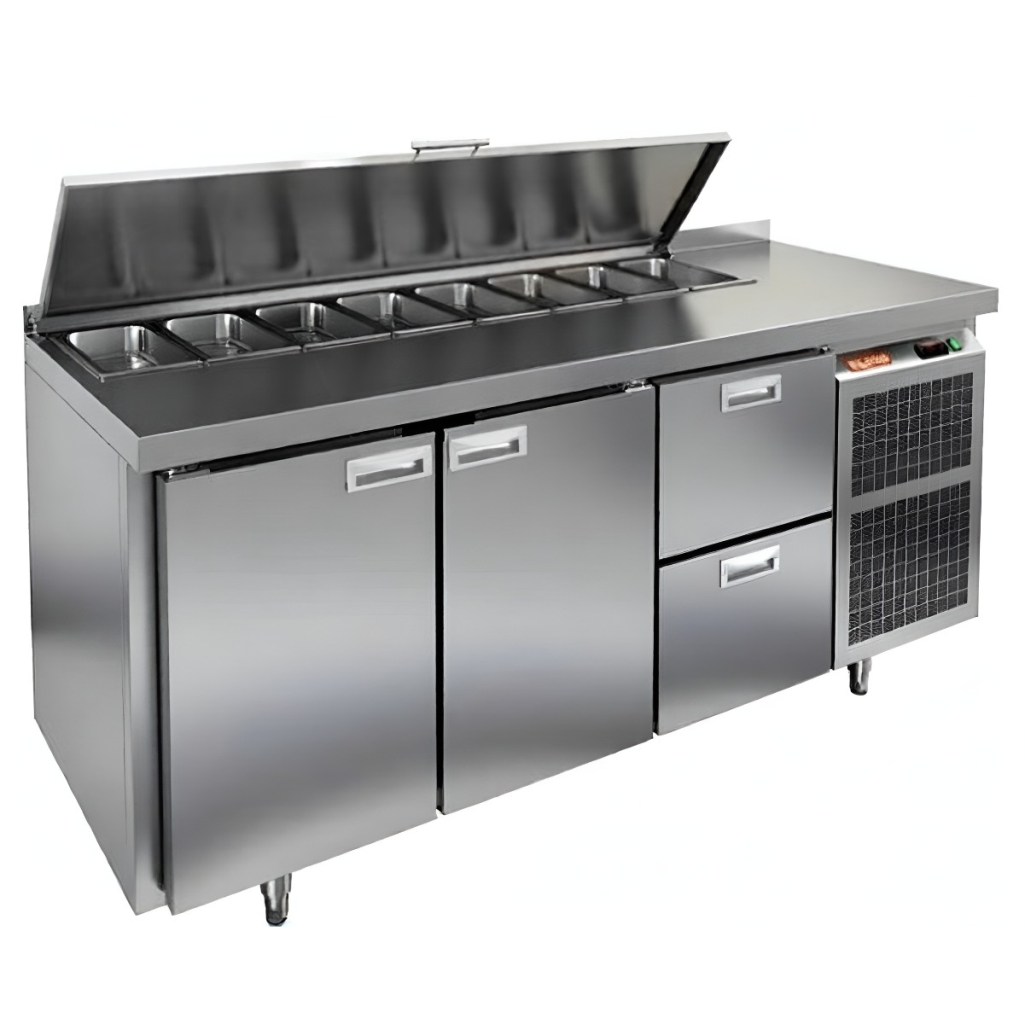 Каталог оборудования Холодильное оборудованиеСтолы охлаждаемыеСтолы холодильные для салатовСтол холодильный для салатов HiCold SL1-112GN (1/3) с крышкой Стол холодильный для салатов HiCold SL1-112GN (1/3) с крышкой Код товара: 064-841 Поделиться: WhatsAppTelegram СравнитьДобавить в КПВ избранное 0 198 892 ₽ В корзину 0 шт Под заказСамовывоз сегодня бесплатно Взять в кредит Купить в лизинг Получить консультацию в WhatsApp Описание Характеристики Отзывы 0 Инструкции 2 Стол холодильный для салатов HiCold SL1-112GN (1/3) предназначен для использования на предприятиях общественного питания и торговли. Он объединяет рабочую поверхность и охлаждаемый отсек, что делает его удобным решением для хранения, охлаждения и подготовки ингредиентов при приготовлении салатов, пиццы и других блюд. Такая конструкция позволяет повару работать быстрее и эффективнее, так как все необходимые продукты находятся под рукой. Корпус и столешница выполнены из прочной нержавеющей стали, устойчивой к коррозии и легко поддающейся санитарной обработке. Металлическая крышка защищает продукты от загрязнений и сохраняет их свежесть. Особенности модели: Электронная панель управления — точная настройка температурного режима. 2 глухие двери — удобный доступ к холодильному отсеку. 2 выдвижных ящика — быстрое размещение и замена продуктов. Вместимость салат-бара — до 8 гастроемкостей глубиной до 100 мм. Автоматические доводчики дверей с фиксацией в открытом положении. Легкозаменяемые магнитные уплотнители — надежная герметичность. Открытая агрегатная часть — быстрый доступ для обслуживания. Регулируемые по высоте ножки — устойчивость даже на неровном полу. Толщина столешницы, борта и теплоизоляции — 50 мм, что обеспечивает прочность и энергоэффективность конструкции. HiCold SL1-112GN (1/3) — практичное и удобное решение для профессиональной кухни, обеспечивающее удобную подготовку и хранение ингредиентов.Изображение товара, представленного на фото, может отличаться от его фактического вида. Показать все Габаритные размеры1835×700×850 ммДиапазон рабочей температурыот +2 до +10 °CРасположение агрегатаБоковое Материал столешницыНержавеющая Тип столаС дверьми и ящиками Тип двериГлухая Объём505 лКоличество дверей2 штТип гастроемкостейGN 1/3 Количество ящиков2 штРазмер полки530×325 ммНапряжение220 ВМощность0,46 кВтТип охлажденияДинамическое Тип оттайкиАвтоматическая СтолешницаС бортом Вес нетто120 кгВес брутто140 кгБрендHicold Оставить отзыв Еще никто не оставил отзыв на этот товар Паспорт на HICOLD SL1-112GN.pdfДекларация о соответствии.pdf Ранее просмотрено Под заказ 235 161 ₽ Стол холодильный для салатов HiCold SLE1-222GN (1/3) без крышки Под заказ 123 742 ₽ Стол холодильный для салатов HiCold SLE1-11SN (1/3) О с крышкой