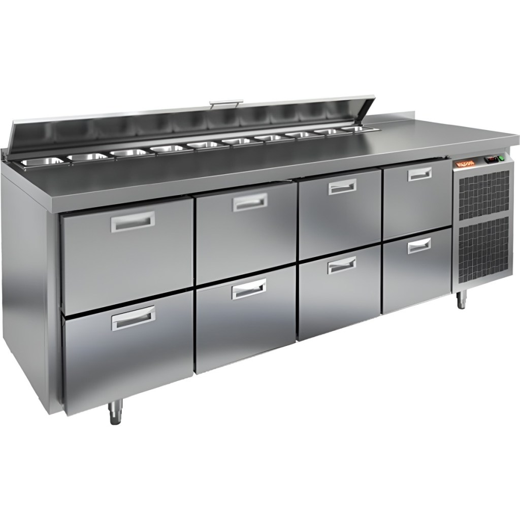 Каталог оборудования Холодильное оборудованиеСтолы охлаждаемыеСтолы холодильные для салатовСтол холодильный для салатов HiCold SL1-2222GN (1/3) с крышкой Стол холодильный для салатов HiCold SL1-2222GN (1/3) с крышкой Код товара: 064-840 Поделиться: WhatsAppTelegram СравнитьДобавить в КПВ избранное 0 320 392 ₽ В корзину 0 шт Под заказСамовывоз сегодня бесплатно Взять в кредит Купить в лизинг Получить консультацию в WhatsApp Описание Характеристики Отзывы 0 Инструкции 2 Стол холодильный для салатов HiCold SL1-2222GN (1/3) с крышкой предназначен для использования на предприятиях общественного питания и торговли. Он подходит для хранения, обработки и кратковременного охлаждения ингредиентов, применяемых при приготовлении пиццы, салатов, закусок и других блюд. Модель совмещает охлаждаемый объем и рабочую поверхность, что значительно повышает удобство и скорость работы персонала. Корпус и столешница выполнены из прочной и гигиеничной нержавеющей стали, устойчивой к влаге, загрязнениям и механическим повреждениям. Металлическая крышка защищает продукты от загрязнений и сохраняет их свежесть. Особенности модели: Электронная панель управления — точная настройка температуры. Салат-бар на 10 гастроемкостей — быстрый доступ к ингредиентам. 8 выдвижных ящика — удобное размещение продуктов. Съёмные магнитные уплотнители — герметичность и стабильная температура. Открытая агрегатная часть — лёгкое обслуживание. Регулируемые ножки — установка на любой поверхности. Глубина гастроемкостей до 150 мм, столешница и теплоизоляция — 50 мм. Высота борта — 50 мм — защита рабочей поверхности. HiCold SL1-2222GN (1/3) с крышкой — универсальное и функциональное решение для профессиональной кухни, позволяющее оптимизировать рабочие процессы и повысить производительность за счет удобного хранения и быстрого доступа к ингредиентам.Изображение товара, представленного на фото, может отличаться от его фактического вида. Показать все Габаритные размеры2280×700×850 ммДиапазон рабочей температурыот +2 до +10 °CРасположение агрегатаБоковое Материал столешницыНержавеющая Тип столаС ящиками Объём660 лТип гастроемкостейGN 1/3 Количество ящиков8 штРазмер полки530×325 ммНапряжение220 ВМощность0,48 кВтТип охлажденияДинамическое Тип оттайкиАвтоматическая СтолешницаС бортом Габариты в упаковке2420×850×1000 ммВес нетто145 кгВес брутто211 кгБрендHicold Оставить отзыв Еще никто не оставил отзыв на этот товар Паспорт на HICOLD SL1-2222GN.pdfДекларация о соответствии.pdf Ранее просмотрено Под заказ 149 302 ₽ Стол холодильный для салатов HiCold SLE2-111GN (1/6) О З без крышки Под заказ 170 901 ₽ Стол холодильный для салатов HiCold SLE3-111GN полипропилен, без крышки