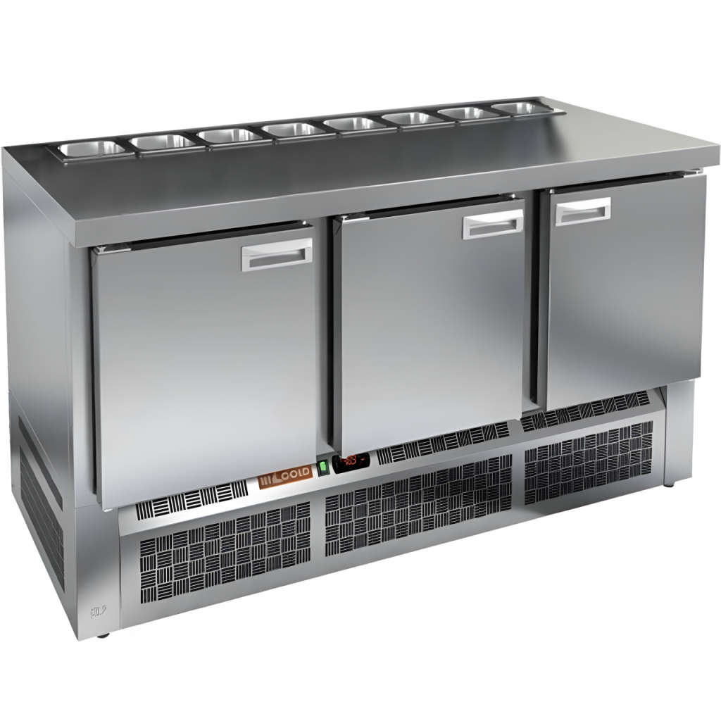 Каталог оборудования Холодильное оборудованиеСтолы охлаждаемыеСтолы холодильные для салатовСтол холодильный для салатов HiCold SLE1-111GN (1/3) О без крышки Стол холодильный для салатов HiCold SLE1-111GN (1/3) О без крышки Код товара: 064-542 Поделиться: WhatsAppTelegram СравнитьДобавить в КПВ избранное 0 143 361 ₽ В корзину 0 шт Под заказСамовывоз сегодня бесплатно Взять в кредит Купить в лизинг Получить консультацию в WhatsApp Описание Характеристики Отзывы 0 Инструкции 2 Стол холодильный для салатов HiCold SLE1-111GN (1/3) О без крышки предназначен для предприятий общественного питания и торговли. Он позволяет хранить и обрабатывать ингредиенты для пиццы, салатов и других блюд, а также охлаждать и кратковременно хранить скоропортящиеся продукты и напитки. Модель совмещает рабочую поверхность и охлаждаемый объем, что обеспечивает удобство работы повара: все необходимые компоненты всегда под рукой. Корпус и столешница выполнены из нержавеющей стали, что гарантирует долговечность и простоту ухода. Особенности: Динамическая система охлаждения — равномерное распределение температуры по всему объему. Автоматическая оттайка — упрощает уход за оборудованием. Электронная панель управления — удобная настройка температуры и режимов работы. 2 вместительные внутренние полки формата GN 1/1 — оптимальное хранение ингредиентов. Автоматические доводчики дверей с фиксатором открытого положения — комфорт и безопасность работы. Легкозаменяемые магнитные уплотнители — простота обслуживания. Открытая агрегатная часть — облегчает доступ для обслуживания. Регулируемые по высоте ножки — адаптация к рабочей поверхности. Размер полки: 530×325 мм (GN 1/1) Максимальная глубина гастроемкостей: 100 мм Столешница без борта, без крышки: толщина столешницы и теплоизоляции — 50 мм, высота борта — 50 мм HiCold SLE1-111GN (1/3) О без крышки — надежный и удобный стол для профессиональной кухни. Он обеспечивает эффективное охлаждение и хранение ингредиентов, а комбинированная рабочая поверхность с холодильным объемом упрощает работу повара, делая процесс приготовления быстрее и удобнее.Изображение товара, представленного на фото, может отличаться от его фактического вида. Показать все Габаритные размеры1485×700×800 ммДиапазон рабочей температурыот +2 до +10 °CРасположение агрегатаНижнее Материал столешницыНержавеющая Тип столаС дверьми Тип двериГлухая Объём375 лКоличество дверей3 штТип гастроемкостейGN 1/3 Размер полки530×325 ммНапряжение220 ВМощность0,22 кВтТип охлажденияДинамический Тип оттайкиАвтоматическая СтолешницаБез борта Вес нетто115 кгВес брутто176 кгБрендHicold Оставить отзыв Еще никто не оставил отзыв на этот товар Паспорт на HICOLD SLE1-111GN.pdfДекларация о соответствии.pdf Ранее просмотрено Под заказ 152 451 ₽ Стол холодильный для салатов HiCold SLE2-111GN (1/6) З с крышкой Под заказ 182 691 ₽ Стол холодильный для салатов HiCold SLE2-22GN (1/6) О без крышки Под заказ 176 082 ₽ Стол холодильный среднетемпературный Abat СХС-60-02 без борта (дверь-стекло, дверь-стекло, дверь-стекло) Под заказ 163 612 ₽ Стол холодильный для салатов HiCold SL1-111GN (1/3) без крышки