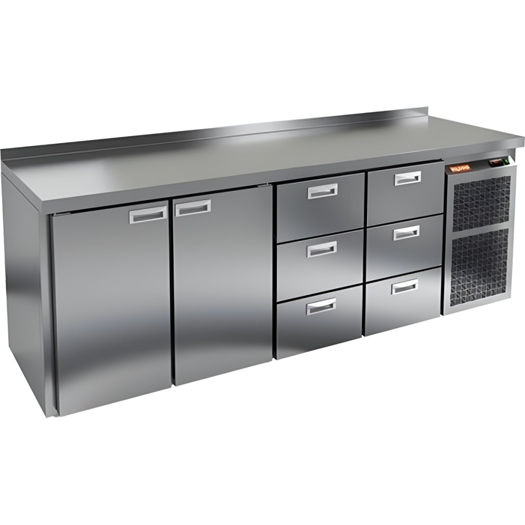 Каталог оборудования Холодильное оборудованиеСтолы охлаждаемыеСтолы холодильные среднетемпературныеСтол холодильный среднетемпературный HiCold GN 1133 BR2 TN Стол холодильный среднетемпературный HiCold GN 1133 BR2 TN Код товара: 062-299 Поделиться: WhatsAppTelegram СравнитьДобавить в КПВ избранное 0 275 932 ₽ В корзину 0 шт Под заказСамовывоз сегодня бесплатно Взять в кредит Купить в лизинг Получить консультацию в WhatsApp Описание Характеристики Отзывы 0 Стол холодильный среднетемпературный HiCold GN 1133 BR2 TN сочетает рабочую поверхность для раскатки теста и подготовки ингредиентов с камерой для охлаждения и кратковременного хранения скоропортящихся продуктов и напитков. Это оборудование отлично подходит для предприятий общественного питания, обеспечивая удобство и высокую производительность. Особенности: Увеличенный объём камеры для хранения большего количества продуктов. Климатическое исполнение Pro Line обеспечивает работу при температуре до +40 °C. Полки и направляющие выполнены по стандарту GN для совместимости с профессиональным оборудованием. Прочный цельнозаливной корпус из нержавеющей стали с 50 мм изоляцией для высокой герметичности и долговечности. Надёжный электронный блок управления с несколькими режимами оттаивания для стабильной работы. Вентилятор повышенной мощности обеспечивает равномерное и быстрое охлаждение. Интеллектуальная система автоматического размораживания. Термическое выпаривание конденсата предотвращает накопление влаги. Энергоэффективный компрессор снижает затраты на электроэнергию. Упрощённый доступ к агрегатам для быстрого и удобного сервисного обслуживания. Двери оборудованы доводчиками для мягкого и плотного закрытия. Регулируемые по высоте низкие ножки обеспечивают устойчивость на любой поверхности. Полки рассчитаны на нагрузку до 50 кг, что позволяет хранить тяжелые продукты. Высота борта 50 мм предотвращает падение продуктов со столешницы. HiCold GN 1133 BR2 TN — это надежное и эргономичное решение для профессиональных кухонь, обеспечивающее эффективное охлаждение и удобство в работе. Высокое качество материалов и продуманные технические решения делают этот холодильный стол практичным, энергоэффективным и простым в обслуживании.Изображение товара, представленного на фото, может отличаться от его фактического вида. Показать все Габаритные размеры2395×700×850 ммДиапазон рабочей температурыот -2 до +10 °CРасположение агрегатаБоковое Материал столешницыНержавеющая Тип столаС дверьми и ящиками Тип двериГлухая Объём730 лКоличество дверей2 штКоличество полок2 штКоличество ящиков6 штРазмер полки530×325 ммНапряжение220 ВМощность0,51 кВтТип охлажденияДинамический Тип оттайкиАвтоматическая СтолешницаС бортом Вес нетто192 кгВес брутто211 кгБрендHicoldВсе холодильные столы HicoldВсе нержавеющие холодильные столы Все холодильные столы с бортом Оставить отзыв Еще никто не оставил отзыв на этот товар Похожие товары Перейти в каталог Под заказ 79 911 ₽ Стол холодильный среднетемпературный HiCold GN 1/TN W Под заказ 104 947 ₽ Стол холодильный среднетемпературный Abat СХС-70 с бортом (дверь) С этим товаром покупают В наличии 96 390 ₽ Шкаф холодильный Полюс Carboma R560 В наличии 58 095 ₽ Витрина холодильная для ингредиентов HICOLD VRTU 1835 1/3 Ранее просмотрено В наличии 243 351 ₽ Стол холодильный среднетемпературный HiCold BN 133 BR2 TN