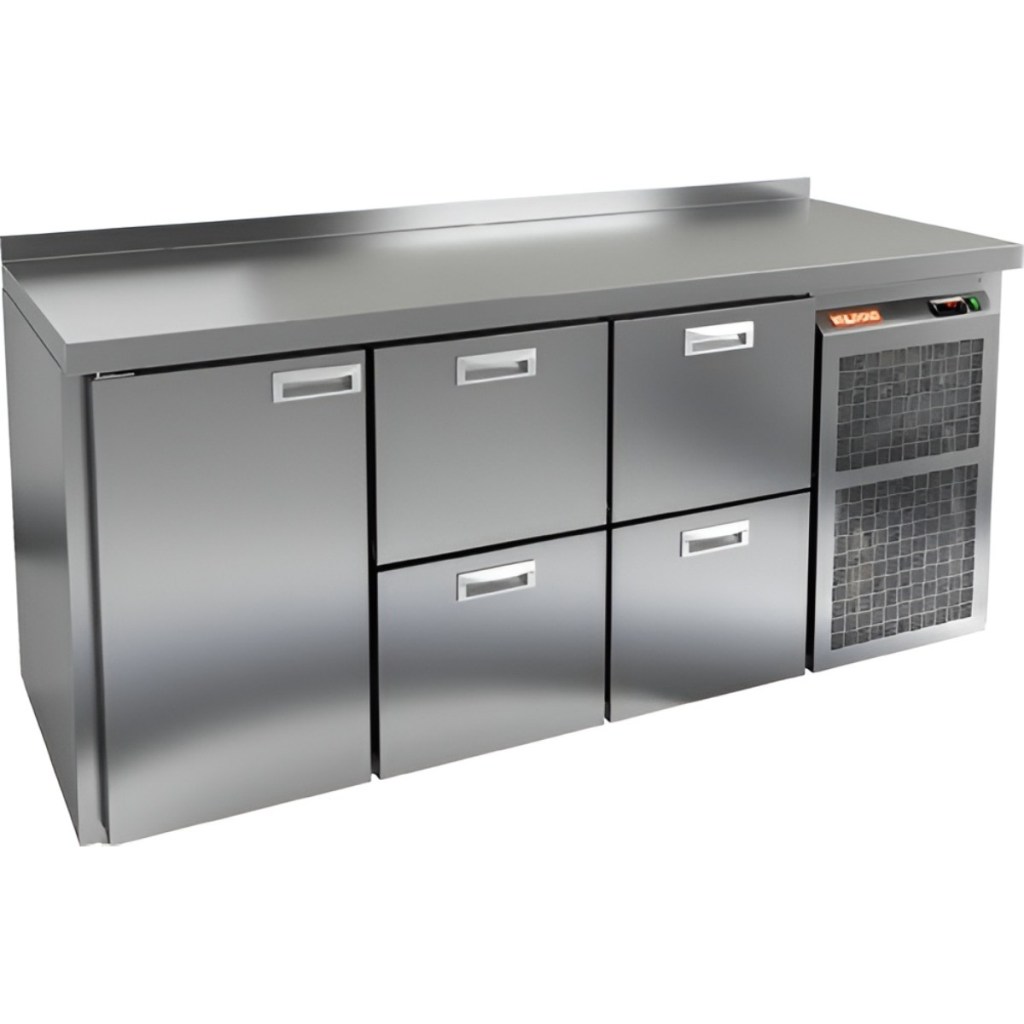 Каталог оборудования Холодильное оборудованиеСтолы охлаждаемыеСтолы холодильные среднетемпературныеСтол холодильный среднетемпературный HiCold GN 122 BR2 TN Стол холодильный среднетемпературный HiCold GN 122 BR2 TN Код товара: 062-301 Поделиться: WhatsAppTelegram СравнитьДобавить в КПВ избранное 0 213 652 ₽ В корзину 0 шт Под заказСамовывоз сегодня бесплатно Взять в кредит Купить в лизинг Получить консультацию в WhatsApp Описание Характеристики Отзывы 0 Инструкции 2 Стол холодильный среднетемпературный HiCold GN 122 BR2 TN сочетает рабочую поверхность для раскатки теста и подготовки ингредиентов с камерой для охлаждения и кратковременного хранения скоропортящихся продуктов и напитков. Это оборудование отлично подходит для предприятий общественного питания, обеспечивая удобство и высокую производительность. Особенности: Увеличенный объём камеры для хранения большего количества продуктов. Климатическое исполнение Pro Line обеспечивает работу при температуре до +40 °C. Полки и направляющие выполнены по стандарту GN для совместимости с профессиональным оборудованием. Прочный цельнозаливной корпус из нержавеющей стали с 50 мм изоляцией для высокой герметичности и долговечности. Надёжный электронный блок управления с несколькими режимами оттаивания для стабильной работы. Вентилятор повышенной мощности обеспечивает равномерное и быстрое охлаждение. Интеллектуальная система автоматического размораживания. Термическое выпаривание конденсата предотвращает накопление влаги. Энергоэффективный компрессор снижает затраты на электроэнергию. Упрощённый доступ к агрегатам для быстрого и удобного сервисного обслуживания. Двери оборудованы доводчиками для мягкого и плотного закрытия. Регулируемые по высоте низкие ножки обеспечивают устойчивость на любой поверхности. Полки рассчитаны на нагрузку до 50 кг, что позволяет хранить тяжелые продукты. Высота борта 50 мм предотвращает падение продуктов со столешницы. HiCold GN 122 BR2 TN — это надежное и эргономичное решение для профессиональных кухонь, обеспечивающее эффективное охлаждение и удобство в работе. Высокое качество материалов и продуманные технические решения делают этот холодильный стол практичным, энергоэффективным и простым в обслуживании.Изображение товара, представленного на фото, может отличаться от его фактического вида. Показать все Габаритные размеры1950×700×850 ммДиапазон рабочей температурыот -2 до +10 °CРасположение агрегатаБоковое Материал столешницыНержавеющая Тип столаС дверьми и ящиками Тип двериГлухая Объём556 лКоличество дверей1 штКоличество полок1 штКоличество ящиков4 штРазмер полки530×325 ммНапряжение220 ВМощность0,41 кВтТип охлажденияДинамический Тип оттайкиАвтоматическая СтолешницаС бортом Вес нетто135 кгВес брутто148 кгБрендHicoldВсе холодильные столы HicoldВсе нержавеющие холодильные столы Все холодильные столы с бортом Оставить отзыв Еще никто не оставил отзыв на этот товар Паспорт на HICOLD GN 122 BR2 TN.pdfДекларация о соответствии.pdf Похожие товары Перейти в каталог Под заказ 79 911 ₽ Стол холодильный среднетемпературный HiCold GN 1/TN W Под заказ 107 046 ₽ Стол холодильный среднетемпературный Abat СХС-70 с бортом (дверь) С этим товаром покупают В наличии 93 502 ₽ Шкаф холодильный Полюс Carboma R560 В наличии 58 095 ₽ Витрина холодильная для ингредиентов HICOLD VRTU 1835 1/3 Ранее просмотрено Под заказ 146 961 ₽ Стол холодильный сред
