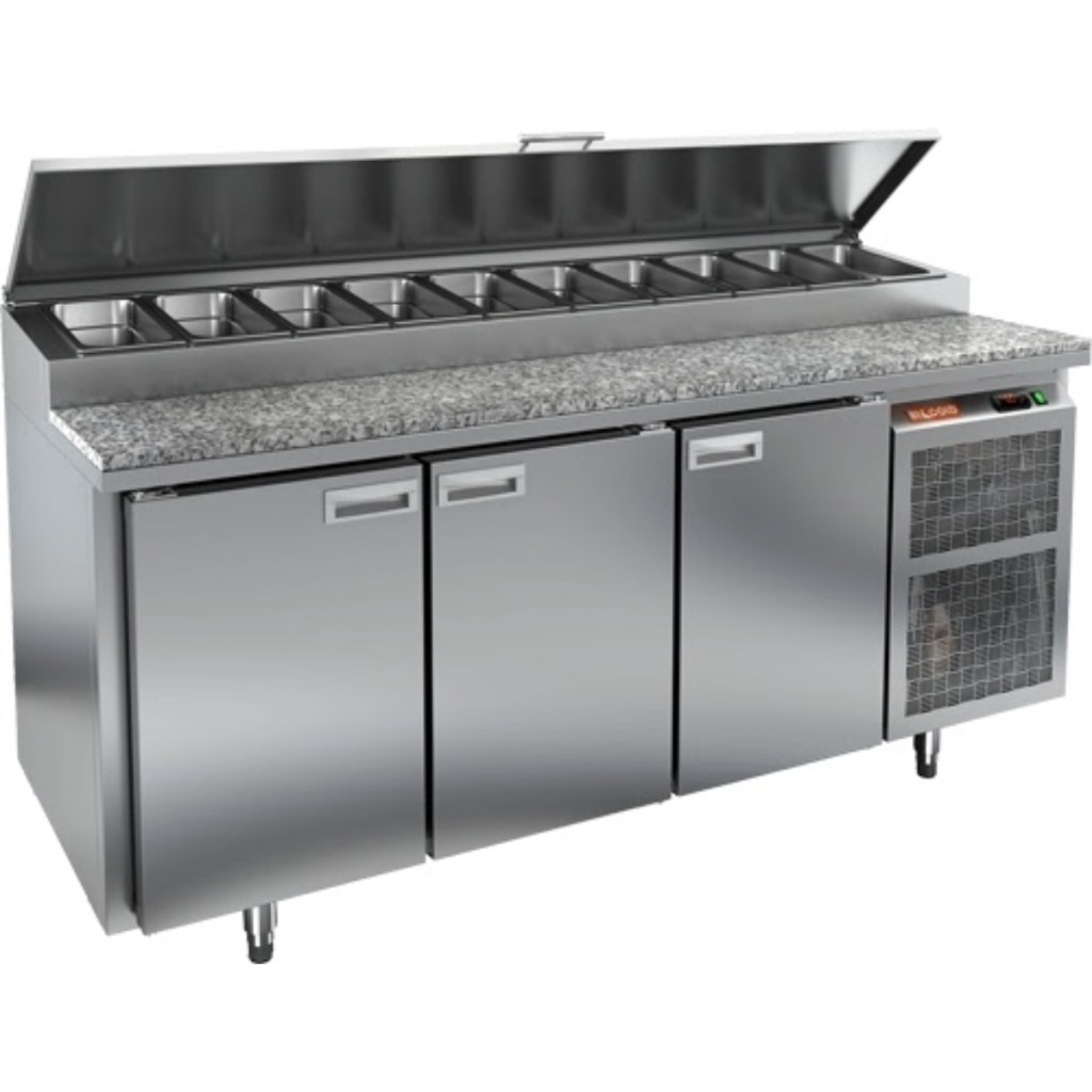 Стол холодильный для пиццы HiCold PZ1-111/GN (1/3H) камень предназначен для предприятий общественного питания и торговли. Он используется для раскатки теста и обработки ингредиентов, необходимых для приготовления пиццы, салатов и других блюд, а также для охлаждения и кратковременного хранения скоропортящихся продуктов и напитков. Модель сочетает рабочую поверхность и охлаждаемый объем, что значительно облегчает работу повара, позволяя иметь все необходимые компоненты под рукой.