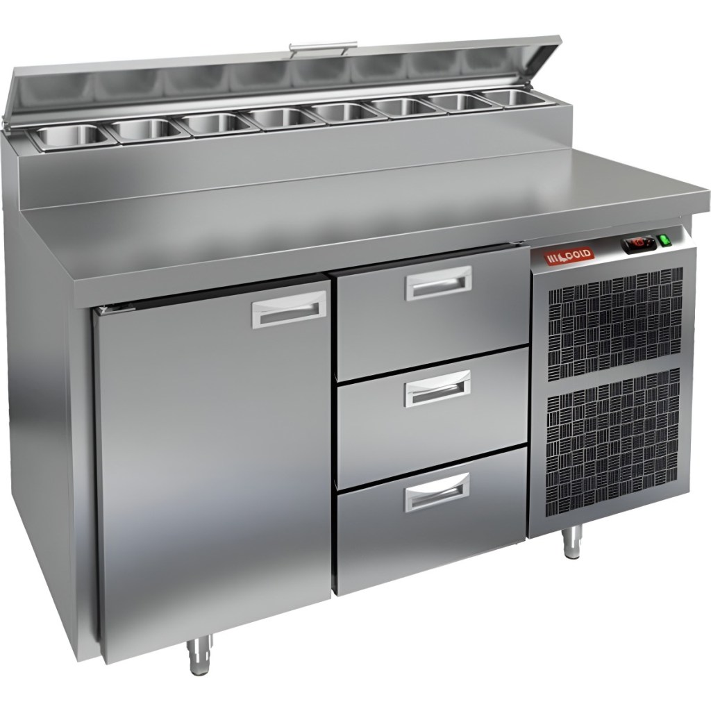Каталог оборудования Холодильное оборудованиеСтолы охлаждаемыеСтолы холодильные для пиццыСтол холодильный для пиццы HiCold PZ1-13/GN (1/3) Стол холодильный для пиццы HiCold PZ1-13/GN (1/3) Код товара: 064-702 Поделиться: WhatsAppTelegram СравнитьДобавить в КПВ избранное 0 229 941 ₽ В корзину 0 шт Под заказСамовывоз сегодня бесплатно Взять в кредит Купить в лизинг Получить консультацию в WhatsApp Описание Характеристики Отзывы 0 Инструкции 2 Стол холодильный для пиццы HiCold PZ1-13/GN (1/3) — профессиональное решение для предприятий общественного питания и торговли. Он объединяет удобную рабочую поверхность для раскатки теста и подготовки ингредиентов с охлаждаемым блоком для хранения скоропортящихся продуктов и напитков. Корпус и столешница выполнены из нержавеющей стали, обеспечивающей прочность, долговечность и лёгкость ухода. Основные особенности: Нержавеющая столешница и корпус — прочность, гигиеничность и лёгкость очистки Динамическая система охлаждения — равномерное распределение холода Автоматическая оттайка — стабильная работа без образования наледи Электронная панель управления — точная настройка температуры 1 дверца и 3 выдвижных ящика — удобная организация внутреннего пространства 1 вместительная полка формата GN 1/1 (размер 530×325 мм) Автоматические доводчики дверей с фиксатором открытого положения — комфорт при работе Легкозаменяемые магнитные уплотнители — поддержание герметичности Открытая агрегатная часть — удобный доступ для обслуживания Регулируемые по высоте ножки — установка на неровных поверхностях Максимальная глубина гастроёмкостей: 100 мм Глубина рабочей поверхности: 324 мм Толщина столешницы и теплоизоляции: 50 мм Вместимость салат-бара: до 7 гастроёмкостей Стол холодильный HiCold PZ1-13/GN (1/3) — это компактный и функциональный стол для пиццы и салатов. Он сочетает рабочую поверхность, охлаждаемый блок и защиту ингредиентов, обеспечивая удобство, высокую производительность и долговечность в профессиональной кухне.Изображение товара, представленного на фото, может отличаться от его фактического вида. Показать все Габаритные размеры1390×700×1000 ммДиапазон рабочей температурыот +2 до +10 °CРасположение агрегатаБоковое Материал столешницыНержавеющая Тип столаС дверьми и ящиками Тип двериГлухая Объём350 лТип гастроемкостейGN 1/3 Количество дверей1 штКоличество ящиков3 штРазмер полки530×325 ммНапряжение220 ВМощность0,22 кВтТип охлажденияДинамическое Тип оттайкиАвтоматическая Габариты в упаковке1490×800×1080 ммВес нетто141 кгВес брутто161 кгБрендHicoldВсе холодильные столы для пиццы HicoldВсе нержавеющие холодильные столы для пиццы Оставить отзыв Еще никто не оставил отзыв на этот товар Паспорт на HICOLD PZ1-13/GN.pdfДекларация о соответствии.pdf Ранее просмотрено Под заказ 217 161 ₽ Стол холодильный для пиццы HiCold PZE2-211/GN (1/6H) Под заказ 242 721 ₽ Стол холодильный для пиццы HiCold PZE2-1111/GN (1/6) М
