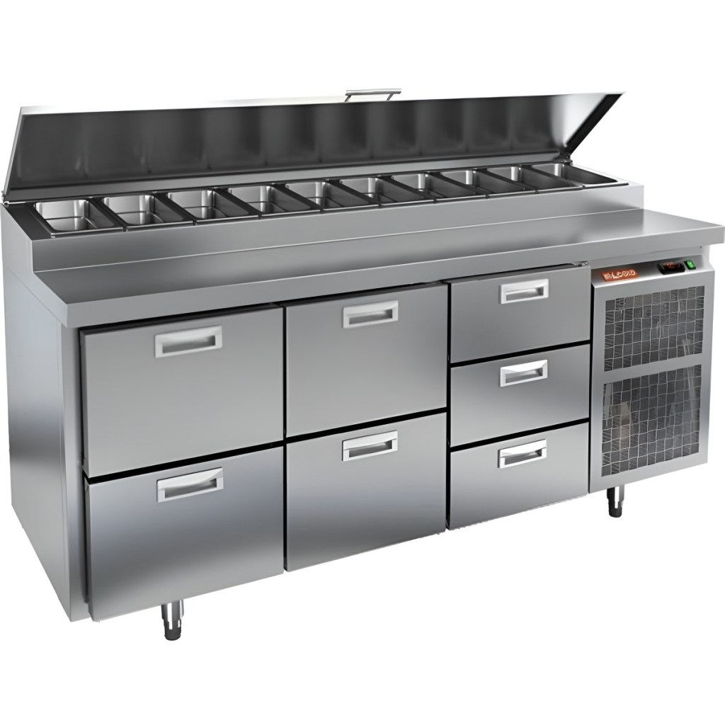 Каталог оборудования Холодильное оборудованиеСтолы охлаждаемыеСтолы холодильные для пиццыСтол холодильный для пиццы HiCold PZ1-223GN (1/3H) Стол холодильный для пиццы HiCold PZ1-223GN (1/3H) Код товара: 064-711 Поделиться: WhatsAppTelegram СравнитьДобавить в КПВ избранное 0 321 471 ₽ В корзину 0 шт Под заказСамовывоз сегодня бесплатно Взять в кредит Купить в лизинг Получить консультацию в WhatsApp Описание Характеристики Отзывы 0 Стол холодильный для пиццы HiCold PZ1-223GN (1/3H) — профессиональное оборудование для предприятий общественного питания и торговли. Он сочетает рабочую поверхность для раскатки теста и подготовки ингредиентов с охлаждаемым блоком для кратковременного хранения скоропортящихся продуктов и напитков. Такое решение обеспечивает максимальное удобство — все необходимые компоненты всегда находятся под рукой. Корпус и столешница выполнены из нержавеющей стали, что гарантирует долговечность, устойчивость к повреждениям и лёгкость ухода. Основные особенности: Нержавеющая столешница и корпус — прочность, гигиеничность и лёгкость очистки Динамическая система охлаждения — равномерное распределение холода Автоматическая оттайка — стабильная работа без образования наледи Электронная панель управления — точная настройка температуры 7 выдвижных ящиков — удобная организация внутреннего пространства без дверцы Автоматические доводчики ящиков — комфорт при работе Легкозаменяемые магнитные уплотнители — поддержание герметичности Открытая агрегатная часть — лёгкий доступ для обслуживания Регулируемые по высоте ножки — установка на неровных поверхностях Максимальная глубина гастроёмкостей: 100 мм Глубина рабочей поверхности: 324 мм Толщина столешницы и теплоизоляции: 50 мм Вместимость салат-бара: до 10 гастроёмкостей Стол холодильный HiCold PZ1-223GN (1/3H) — надёжный и функциональный холодильный стол для пиццы и салатов. Отсутствие дверцы и продуманная система хранения обеспечивают быстрый доступ к ингредиентам, удобство эксплуатации и высокую производительность на профессиональной кухне.Изображение товара, представленного на фото, может отличаться от его фактического вида. Показать все Габаритные размеры1835×700×1000 ммДиапазон рабочей температурыот +2 до +10 °CРасположение агрегатаБоковое Материал столешницыНержавеющая Тип столаС ящиками Объём505 лТип гастроемкостейGN 1/3 Количество ящиков7 штНапряжение220 ВМощность0,5 кВтТип охлажденияДинамическое Тип оттайкиАвтоматическая Габариты в упаковке2000×850×1140 ммВес нетто172 кгВес брутто200 кгБрендHicoldВсе холодильные столы для пиццы HicoldВсе нержавеющие холодильные столы для пиццы Оставить отзыв Еще никто не оставил отзыв на этот товар Ранее просмотрено Под заказ 361 791 ₽ Стол холодильный для пиццы HiCold PZ4-11/GN камень Под заказ 297 352 ₽ Стол холодильный для пиццы HiCold PZ3-211/GN камень Под заказ 253 251 ₽ Стол холодильный для пиццы HiCold PZ3-12/GN камень Под заказ 327 952 ₽ Стол холодильный для пиццы HiCold PZ3-122/GN камень Под заказ 268 552 ₽ Стол холодильный для пиццы HiCold PZ3-13/GN камень Под заказ 224 181 ₽ Стол холодильный для пиццы HiCold PZ2-111GN (1/6) стекло Под заказ 263 692 ₽ Стол холодильный для пиццы HiCold PZ3-13/SN камень