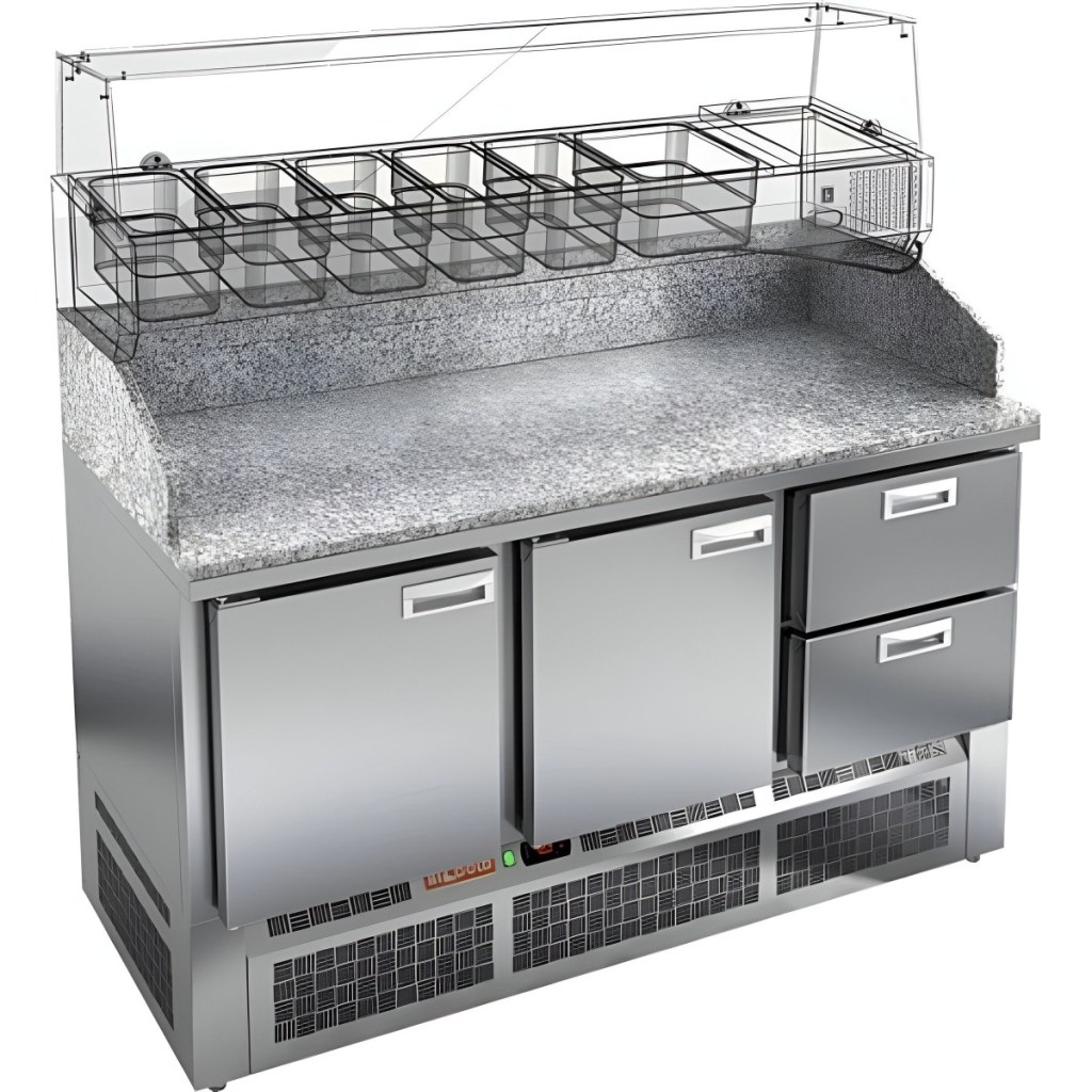 Каталог оборудования Холодильное оборудованиеСтолы охлаждаемыеСтолы холодильные для пиццыСтол холодильный для пиццы HiCold PZE3-112/GN камень Стол холодильный для пиццы HiCold PZE3-112/GN камень Код товара: 064-987 Поделиться: WhatsAppTelegram СравнитьДобавить в КПВ избранное 0 282 141 ₽ В корзину 0 шт Под заказСамовывоз сегодня бесплатно Взять в кредит Купить в лизинг Получить консультацию в WhatsApp Описание Характеристики Отзывы 0 Стол холодильный для пиццы HiCold PZE3-112/GN камень предназначен для использования в пиццериях, кафе, магазинах и ресторанах. Он идеально подходит для раскатки теста, подготовки ингредиентов для пиццы и кратковременного хранения скоропортящихся продуктов. Витрина приобретается отдельно. Особенности модели: Корпус: нержавеющая сталь — прочный, гигиеничный и долговечный Столешница: гранит — устойчива к царапинам, ударам и температурным нагрузкам Охлаждение: динамическое для равномерного поддержания температуры Оттайка: автоматическая — удобство и экономия времени Панель управления: электронная — точная настройка температуры Ножки: регулируемые по высоте — устойчивость на неровной поверхности Двери: автоматические доводчики с фиксатором открытого положения Уплотнители: легкозаменяемые магнитные — герметичность и простота обслуживания Толщина теплоизоляции: 50 мм — сохранение холода и энергоэффективность Рабочая поверхность: глубина 680 мм — удобство работы Полки: 2 полки размером 530×325 мм (GN 1/1) — максимальная вместимость HiCold PZE3-112/GN камень— надёжный и функциональный холодильный стол с гранитной столешницей, который сочетает прочность, удобство в работе и эффективное охлаждение продуктов. Он станет универсальным решением для профессиональной кухни, где важны скорость, организация и сохранение свежести ингредиентов. Изображение товара, представленного на фото, может отличаться от его фактического вида. Показать все Габаритные размеры1485×700×1050 ммДиапазон рабочей температурыот +2 до +10 °CРасположение агрегатаНижнее Материал столешницыГранитная Тип столаС дверьми и ящиками Тип двериГлухая Объём375 лКоличество дверей2 штКоличество ящиков2 штРазмер полки530×325 ммНапряжение220 ВМощность0,22 кВтТип охлажденияДинамическое Тип оттайкиАвтоматическая Габариты в упаковке1700×850×1280 ммВес нетто227 кгВес брутто280 кгБрендHicoldВсе холодильные столы для пиццы HicoldВсе нержавеющие холодильные столы для пиццы Оставить отзыв Еще никто не оставил отзыв на этот товар Ранее просмотрено Под заказ 373 042 ₽ Стол холодильный для пиццы HiCold PZ1-2222GN (1/3H) Цена по запросу Витрина морозильная Иней LIDA KUB M 3,75