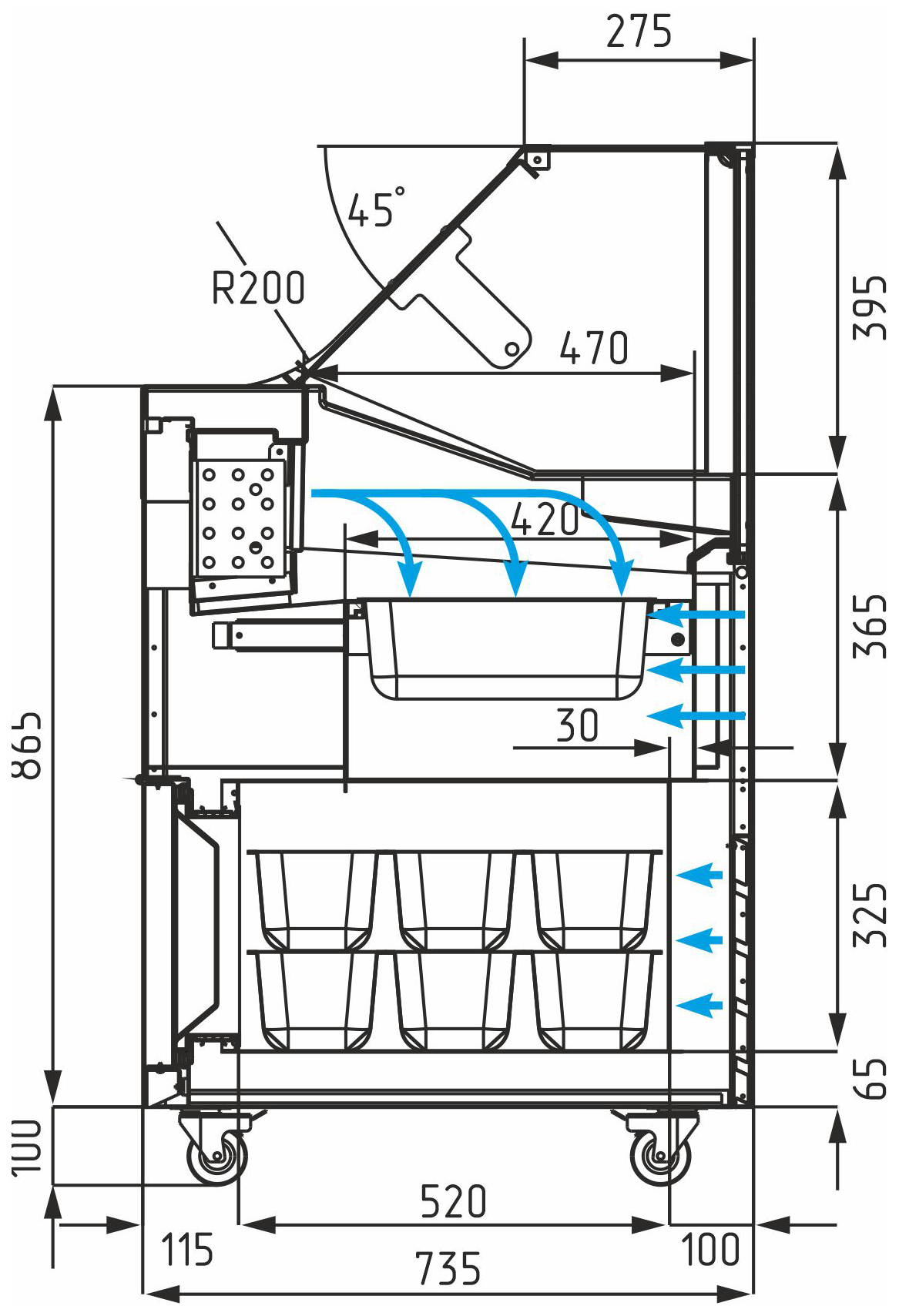 • Удобство использования: Легкий доступ к продукту благодаря скользящим лоткам. Возможность регулировки температуры с помощью электронного термостата.