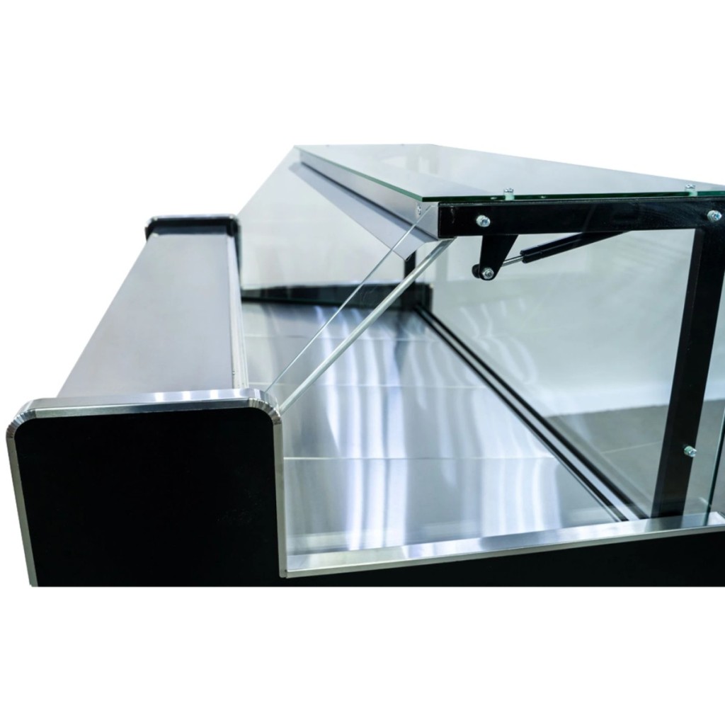 Каталог оборудования Холодильное оборудованиеВитрины холодильныеВитрины холодильные среднетемпературные от 0 до +5 °СВитрина холодильная Ангара 3 КУБ 1,0 статика Витрина холодильная Ангара 3 КУБ 1,0 статика Код товара: 066-482 Поделиться: WhatsAppTelegram СравнитьДобавить в КПВ избранное 0 86 848 ₽ В корзину 0 шт Под заказСамовывоз сегодня бесплатно Взять в кредит Купить в лизинг Получить консультацию в Max Описание Характеристики Отзывы 0 Витрина холодильная Ангара 3 КУБ 1,0 статика предназначена для демонстрации и кратковременного хранения пищевых продуктов. Витрина поддерживает заданную температуру предварительно охлаждённых продуктов и гармонично вписывается в оформление торгового зала или открытой площадки. Особенности: Статическое охлаждение: естественная циркуляция воздуха без вентиляторов, поддержание температуры и свежести продуктов Встроенный компрессорный холодильный агрегат Embraco Aspera или Secop (Danfoss) Надёжный микродвигатель EBM-PAPST Ударопрочное прямое лобовое стекло и боковые стекла толщиной 6 мм Материалы: поверхность выкладки – нержавеющая сталь, подтоварники – оцинкованная сталь с полимерным покрытием, столешницы – нержавеющая сталь Вместительный подтоварник для хранения продукции Автоматическое оттаивание испарителя с отводом талой воды в ёмкость в агрегатном отсеке Электронное управление температурой через блок Elitech ETC-974 (2 датчика, усиленное реле) Равномерное распределение температуры по объёму камеры без образования льда и инея Светодиодное LED-освещение – яркое, экономичное, с низким тепловыделением; включается кнопкой на панели управления Автомат IEK для надёжного включения/выключения витрины Ровное расположение витрины благодаря регулируемым опорам, правильный сбор конденсата и бесшумная работа Хладагент – экологичный и нетоксичный R-134a, R-404a Испаритель SEST LUVE от итальянского производителя Комплектация: с подтоварником и электронным блоком управления Температура окружающей среды: +12…+35 °C Ангара 3 КУБ 1,0 – надёжная и компактная витрина для демонстрации и хранения предварительно охлаждённых продуктов. Обеспечивает равномерное охлаждение, яркое LED-освещение и автоматическое оттаивание, что делает её отличным решением для магазинов, гастрономий и открытых торговых площадок.Изображение товара, представленного на фото, может отличаться от его фактического вида. Показать все Габаритные размеры1020×1150×1300 ммДиапазон рабочей температурыот 0 до +5 °CПлощадь выкладки0,77 м²Длина1020 ммГлубина1150 ммВысота1300 ммНоминальная мощность162 ВтРазмер выкладки820 ммПолезный объем180 лХолодообеспечениеВстроенное Тип охлажденияСтатическое Тип оттайкиАвтоматическая Температура эксплуатацииот +12 до +35 °CПодсветкаЕсть ХладагентR134a, R404a Напряжение220 ВРасход электроэнергии в сутки3,9 кВт/сутГабариты в упаковке1200×1500×1200 ммОбъём (брутто)2,16 м³Вес нетто190 кгВес брутто270 кгБрендАнгараВсе витрины холодильные среднетемпературные от 0 до +5 °С 1,0 м Оставить отзыв Еще никто не оставил отзыв на этот товар Ранее просмотрено Под заказ 33 212 ₽ Тележка-шпилька для гастроемкостей Abat ТШГ-10 Под заказ 33 967 ₽ Шпилька для пароконвектомата Abat ШС‑20‑1/1 Под заказ 83 662 ₽ Витрина холодильная Ангара 1 КУБ 1,0 статика