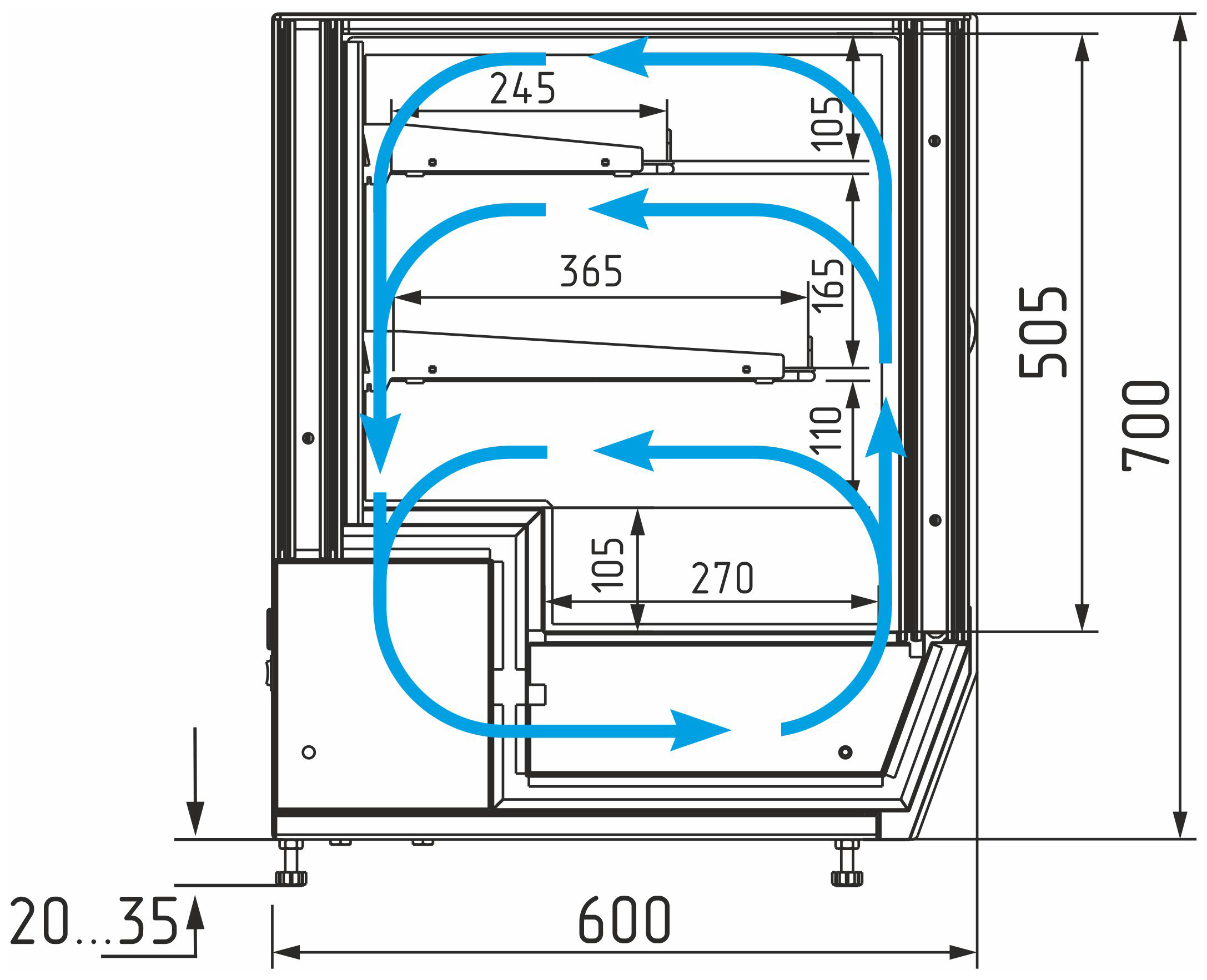 Каталог оборудования Холодильное оборудованиеВитрины настольныеВитрина холодильная настольная Carboma AC59 VM 0,9-1 (слайдер) (0430) Витрина холодильная настольная Carboma AC59 VM 0,9-1 (слайдер) (0430) Код товара: 063-687 Поделиться: WhatsAppTelegram СравнитьДобавить в КПВ избранное 0 117 630 ₽ В корзину 0 шт Под заказСамовывоз сегодня бесплатно Взять в кредит Купить в лизинг Получить консультацию в WhatsApp Описание Характеристики Отзывы 0 Инструкции 2 Витрина холодильная настольная Carboma AC59 VM 0,9-1 (слайдер) (0430) — это универсальная охлаждаемая витрина для демонстрации и кратковременного хранения кондитерских изделий, десертов, салатов и напитков. Идеально подходит для небольших кафе, баров и заведений общественного питания. Модель оснащена закалёнными боковыми стеклопакетами, раздвижными фронтальными и задними дверцами, а также двумя охлаждаемыми полками-решётками с ограничителями. Может устанавливаться на столешницу или встраиваться в барную стойку. Корпус выполнен из стали с ППУ-теплоизоляцией, а рабочая поверхность — из нержавеющей стали. Ключевые особенности: Динамическая система охлаждения — равномерное распределение температуры Компрессор европейского производства — высокая надёжность Электронный блок управления Carel — точный контроль температурного режима Выпариватель конденсата — исключает необходимость ручного слива Возможность установки полок под углом 5° — улучшенная презентация Фронтальные и задние раздвижные дверцы — удобный доступ с обеих сторон Боковая LED-подсветка — подчёркивает структуру десертов и изделий Современный кубический дизайн — стильный внешний вид Регулируемые ножки-опоры — устойчивость на любых поверхностях Настольное или встраиваемое размещение — гибкость установки Стабильный температурный режим — для безопасного хранения продуктов Глубина нижней зоны выкладки: 270 мм Глубина полок: 365 мм (верхняя) / 245 мм (нижняя) Длина нижнего поддона: 866 мм Максимальная высота выкладки продуктов: нижний поддон — 150 мм, полки — 100 мм Температура окружающей среды: от 12 до 25 °C Относительная влажность воздуха: до 60% Carboma AC59 VM 0,9-1 (слайдер) (0430) — это надёжная и эргономичная охлаждаемая витрина с удобным доступом с обеих сторон, которая обеспечит качественную демонстрацию и сохранность продукции в кафе, барах и точках продаж.Изображение товара, представленного на фото, может отличаться от его фактического вида. Показать все Габаритные размеры900×600×735 ммДиапазон рабочей температурыот +4 до +10 °CДлина900 ммГлубина600 ммВысота735 ммРазмещениеГоризонтальная Площадь выкладки0,73 м²Полезный объем витрины0,09 м³Тип охлажденияДинамическое Климатический класс3 ХладагентR290, R600a Напряжение220 ВЭнергопотребление в сутки0,5 кВтКоличество полок2 штГабариты в упаковке1050×750×890 ммВес нетто89 кгВес брутто126 кгБрендПолюсВсе витрины настольные CarbomaВсе холодильные настольные витриныВсе стеклянные настольные витрины Оставить отзыв Еще никто не оставил отзыв на этот товар Брошюра на Carboma AMRA AC59 VM.pdfСхема Carboma AMRA AC59 VM 0,9-1 Slider.jpg Похожие товары Перейти в каталог Под заказ 225 500 ₽ Витрина кондитерская Carboma KC78-110 VV 1,2-2 (открытая) Под заказ 105 200 ₽ Витрина кондитерская Carboma K70 N 0,9-2 Light Bread Паттерн (0106 Седой дуб) хлебная, без стекла Под заказ 134 992 ₽ Витрина кондитерская Ангара Кондитер КУБ XL Д 1,5 Под заказ 199 500 ₽ Витрина кондитерская Chilz VETE KUB OFT 130 шоколад, золотой глянец Под зака